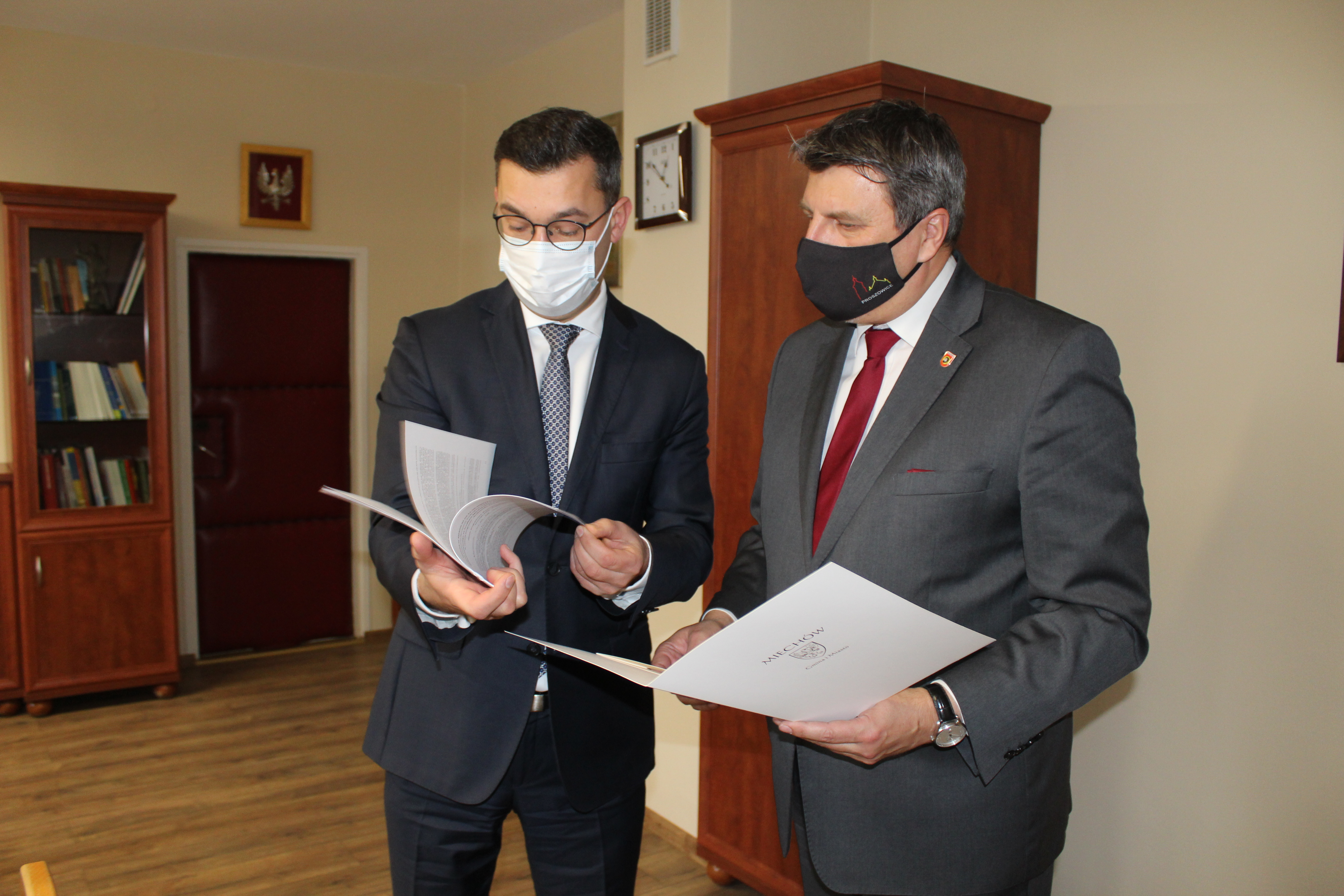 W dniu 7 lutego Dariusz Marczewski Burmistrz Gminy i Miasta Miechów przekazał Grzegorzowi Cichemu - Burmistrzowi Proszowic umowę na dofinansowanie wspólnego projektu pn.: „Głęboka termomodernizacja budynków szkół w Gminie Miechów i Proszowice”.