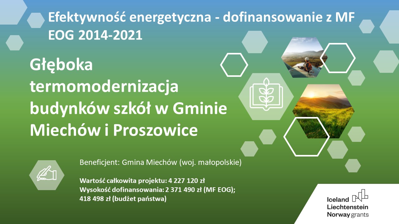 Projekt, którego liderem jest Gmina Miechów realizowany będzie ze środków Mechanizmu Finansowego EOG 2014-2021 w ramach programu: „Środowisko, Energia i Zmiana klimatu”.