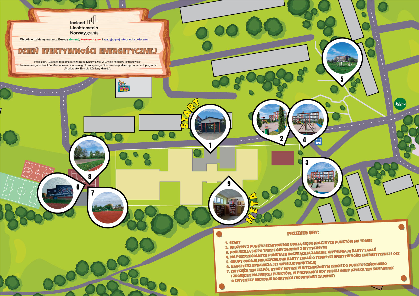 Wydarzenie miało charakter promocyjny podnoszący świadomość ekologiczną i zostało zorganizowane w ramach realizacji projektu pn. "Głęboka termomodernizacja budynków szkół w Gminie Miechów i Proszowice", dofinansowanego z Mechanizmu Finansowego Europejskiego Obszaru Gospodarczego.