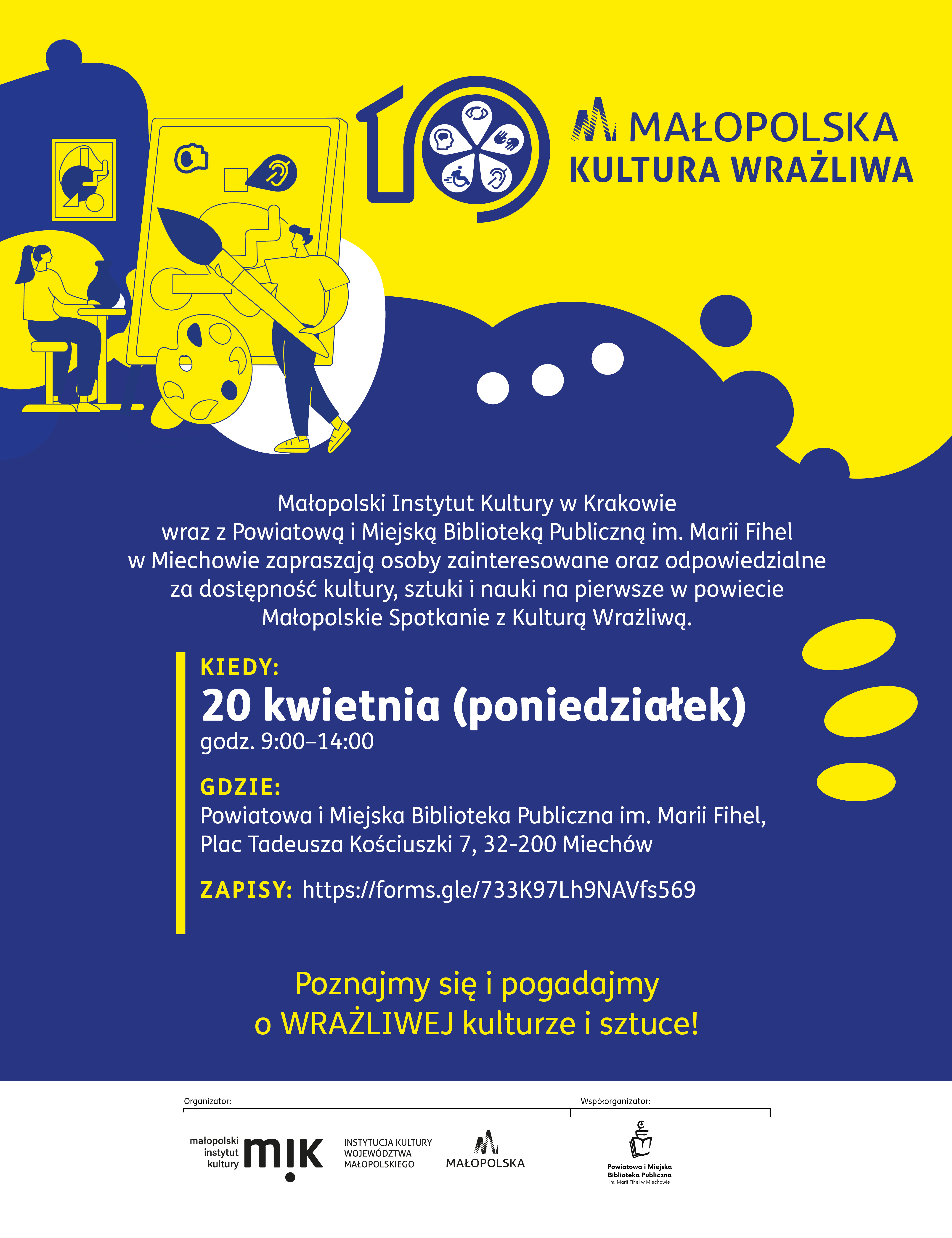 Małopolski Instytut Kultury w Krakowie wraz z Powiatową i Miejską Biblioteką Publiczną im. Marii Fihel w Miechowie zapraszają na Małopolskie Spotkanie z Kulturą Wrażliwą.