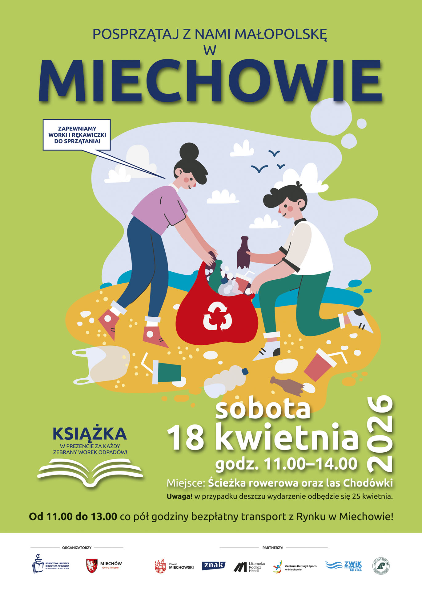 Na akcję Posprzątaj z nami Małopolskę zaprasza Łukasz Smółka – Marszałek Województwa Małopolskiego. Wydarzenie realizowane jest przy wsparciu lokalnych partnerów, w tym samorządu, instytucji kultury i mediów. W organizację wydarzenia zaangażowani są m.in. Gmina i Miasto Miechów, Powiatowa i Miejska Biblioteka Publiczna im. Marii Fihel w Miechowie, Centrum Kultury i Sportu w Miechowie, Zakład Wodociągów i Kanalizacji w Miechowie, Nadleśnictwo Miechów oraz lokalne i regionalne media.