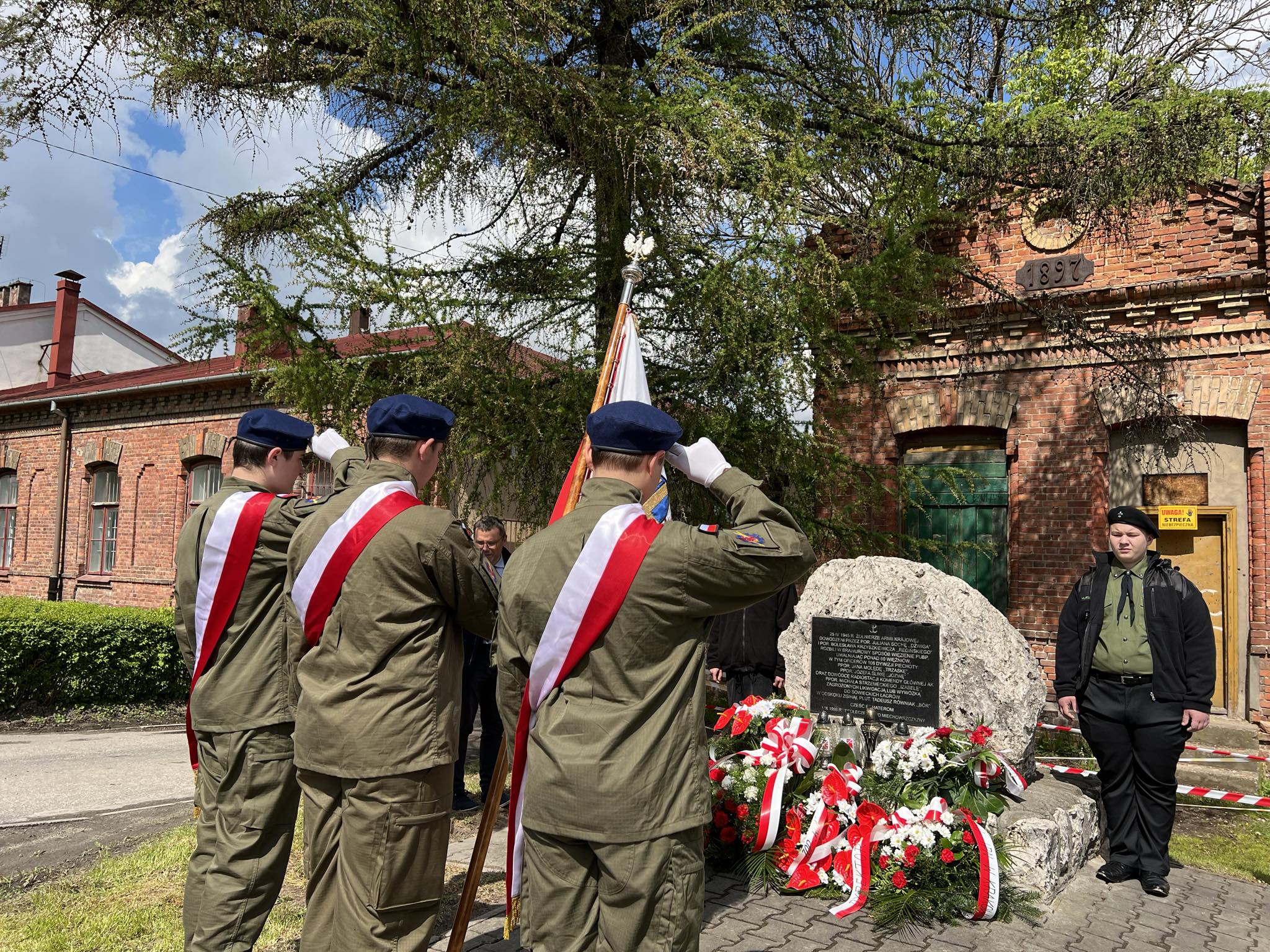 Przy obelisku znajdującym się obok budynku dawnego więzienia, uczestnicy odśpiewali hymn państwowy i złożyli kwiaty.