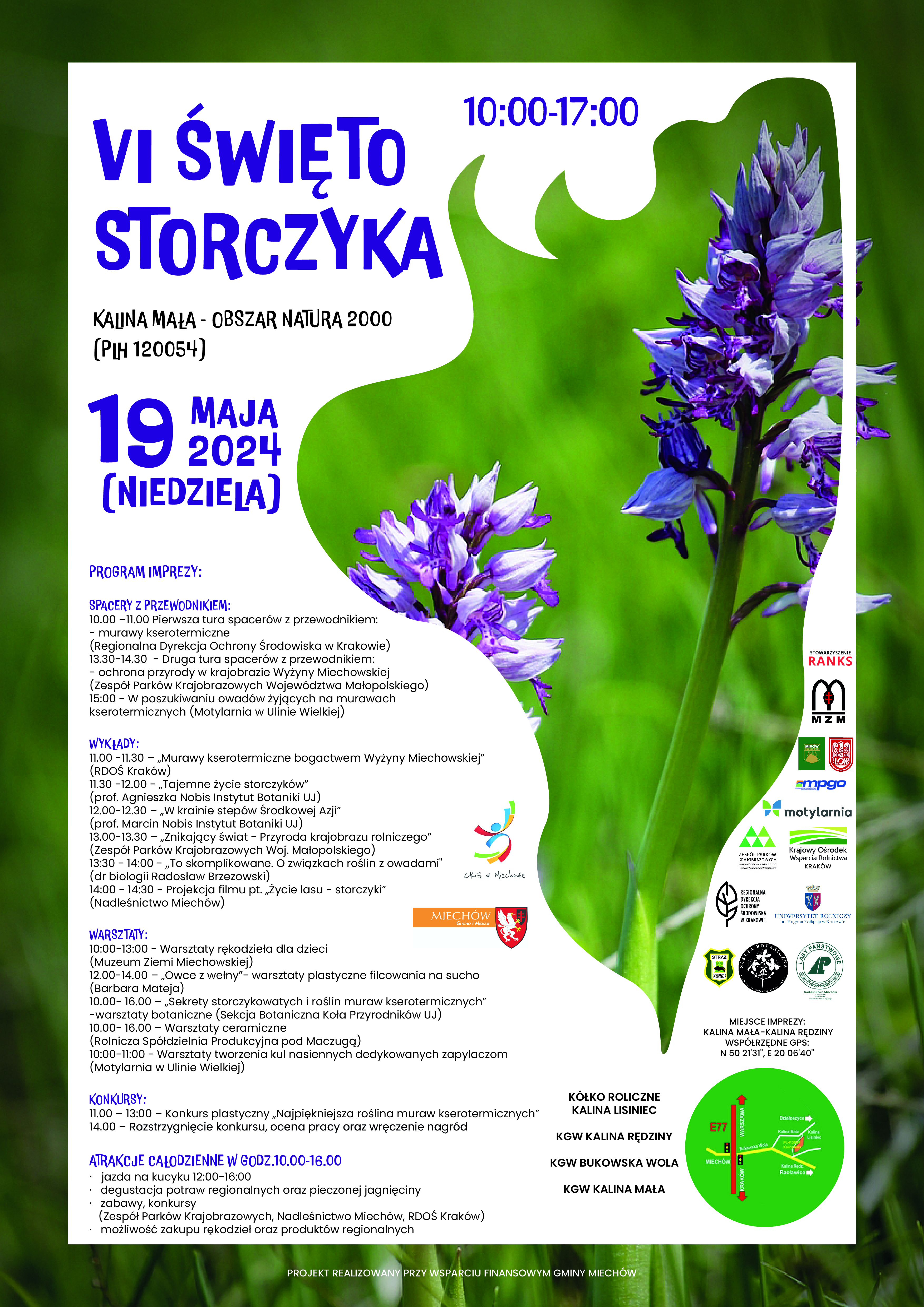 19 maja br. na Obszarze Natura 2000 w Kalinie Małej po raz szósty odbędzie się Święto Storczyka. W programie m.in. spacery przyrodnicze z przewodnikiem, wykłady, konkursy dla dzieci oraz całodzienne atrakcje dla całej rodziny.