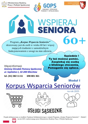 Gminny Ośrodek Pomocy Społecznej w Miechowie realizuje Program „Korpus Wsparcia Seniorów” na rok 2025 w zakresie modułu I Głównym celem Programu (Moduł... -