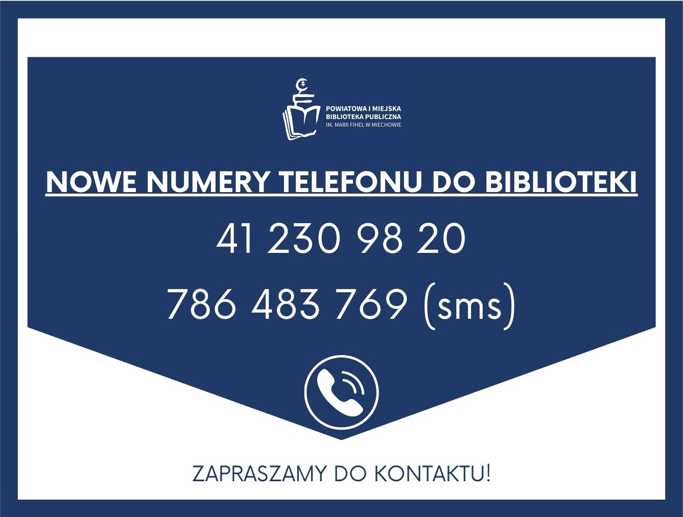 Uprzejmie informujemy, że zmianie uległy numery telefonów kontaktowych do Powiatowej i Miejskiej Biblioteki Publicznej im. Marii Fihel w Miechowie.