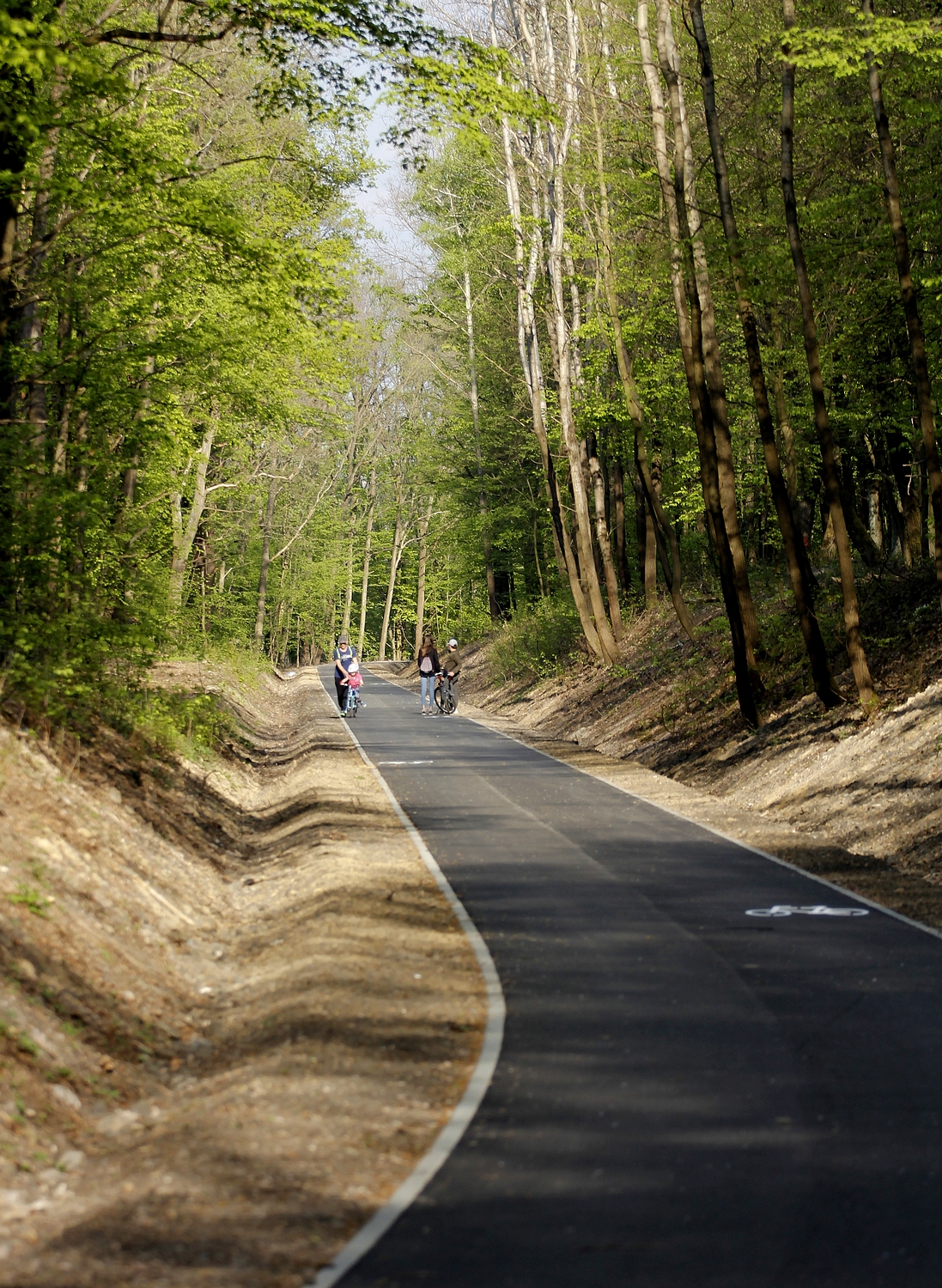 Trasa: Miechów Rynek, ul. Warszawska, ul. Partyzantów – Siedliska (2 km) – Zagorzyce (3,5 km) – Chodówki (7 km) – Chodów (8 km) – Charsznica (9 km) – Uniejów Kolonia (12 km) – Tczyca (17 km) – Pogwizdów (20 km) – Uniejów Rędziny (23 km) – Tunel (26 km) – rezerwat przyrody „Biała Góra” (28 km) – rezerwat przyrody „Kępie” (30 km) – Przysieka (32,5 km) – Kozłów (35 km).