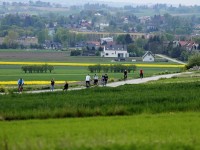 Wycieczkę rozpoczynamy w Miechowie na ulicy Racławickiej 26 – Dworek „Zacisze”.Następnie jedziemy ulicami (Szpitalna – Pęckowskiego – Piłsudskiego). Na skrzyżowaniu ulic Powstańców - Pęckowskiego i Piłsudskiego jest usytuowany cmentarz żydowski. Docieramy do drogi międzynarodowej E-7. W tym miejscu należy zachować szczególną ostrożność – bardzo duży ruch samochodowy. Przedostajemy się na drugą stronę jezdni, a następnie kierujemy się w stronę miejscowości Poradów. W następującej po sobie kolejności przejeżdżamy przez sołectwa: Poradów, Parkoszowice, Sławice Szlacheckie, Sławice Duchowne i Pojałowice. W Sławicach Duchownych zwiedzamy kościół pw. św. Wojciecha, a w Pojałowicach kaplicę dworską. Za Pojałowicami znajduje się skrzyżowanie dróg, w tym miejscu kierujemy się w stronę Nasiechowic. Na 10 km trasy znajduje się pomnik ofiar pacyfikacji. Jest to doskonałe miejsce na odpoczynek. Jedziemy przez Nasiechowice, zwiedzamy kościół pw. św. Wita, Modesta i Krescencji. Na 14,5 km trasy opuszczamy gminę Miechów i wjeżdżamy na teren gminy Racławice. Pierwszą napotkaną miejscowością są Dziemięrzyce. W tej wsi po prawej stronie drogi znajdują się mogiły kosynierów, a 0,5 km dalej po stronie przeciwnej znajduje się dwór. Cały czas jedziemy drogą asfaltową w kierunku Racławic. Kolejną miejscowością są Janowiczki. Po lewej stronie szlaku ukazuje się okazała rezydencja – Willa Walerego Sławka, a po stronie przeciwnej znajdują się błonia i góra o nazwie „Zamczysko”. Z tej góry obserwujemy piękny widok na teren historycznej bitwy pod Racławicami, a na samym szczycie usypany jest Kopiec Kościuszki. Na szczególną uwagę zasługuje pomnik Wojciecha Bartosza Głowackiego, dwór i park przy dworze w Janowiczkach, w którym rosną okazałe drzewa z „Lipą Kościuszki”. W parku dworskim jest również osadzona pamiątkowa tablica. Jest to bardzo dobre miejsce na odpoczynek. Na 18 km trasy znajdują się Racławice. Po prawej stronie drogi usytuowany jest kościół pw. św. Piotra i Pawła wraz z dzwonnicą, na ścianie kościoła sadzona jest pamiątkowa tablica, a w bezpośredniej bliskości znajduje się pomnik Jana Pawła II. Godny uwagi jest również obelisk. W odległości około 300 metrów za kościołem znajduje się cmentarz parafialny. Przejeżdżamy przez drogę wojewódzką nr 783 i jedziemy w kierunku miejscowości Dale. Na rozwidleniu dróg Dale – Dosłońce po prawej stronie jest zlokalizowany rezerwat przyrody „Wały”. Mijamy rezerwat, przed nami wznosi się stromy podjazd, a na samym szczycie znajduje się wieża widokowa, z której roztacza się widok na piękną panoramę gminy Racławice. Jedziemy na wschód, po lewej stronie drogi znajdują się dwa malownicze rezerwaty przyrody „Dąbie”, „Opalonki" i „Sterczów Ścianka”. Przejeżdżamy przez Góry Miechowskie, w niedalekiej odległości od wsi znajduje się obelisk. Opuszczamy gminę Racławice i docieramy do Grzymałowa. Po drodze mijamy dwór „Jabłoniowy Sad”, z tego miejsca po raz kolejny ukazuje się piękny widok na teren powiatu miechowskiego. Jest to bardzo dobre miejsce na odpoczynek. Dalsza część trasy prowadzi do Rędzin Borek a następnie do Kaliny Wielkiej, gdzie znajduje się kościół pw. Imienia NMP. Jedziemy w kierunku zachodnim. Docieramy do Antolki. W miejscowości tej znajduje się karczma, w której można odpocząć i spożyć posiłek. Po krótkiej przerwie wyruszamy w dalszą podróż. Jedziemy drogą międzynarodową E-7. Na odcinku 2,5 km musimy zachować szczególną ostrożność! Jedziemy wzdłuż południowego krańca lasu „Strzyganiec”, na jego zakończeniu po lewej stronie drogi E-7 znajduje się pomnik, na przeciwko tego pomnika skręcamy w lewo. Dalszy szlak wiedzie szutrową drogą przez las. Opuszczamy kompleks leśny i wyjeżdżamy w Widnicy. Z tego miejsca rozlegają się piękne widoki na panoramę Miechowa. Kolejny etap trasy prowadzi przez Siedliska, zwiedzamy kościół pw. św. Krzyża. Wjeżdżamy na przedmieścia Miechowa. Ulice Partyzantów i Warszawska doprowadzają nas do Rynku w Miechowie.
